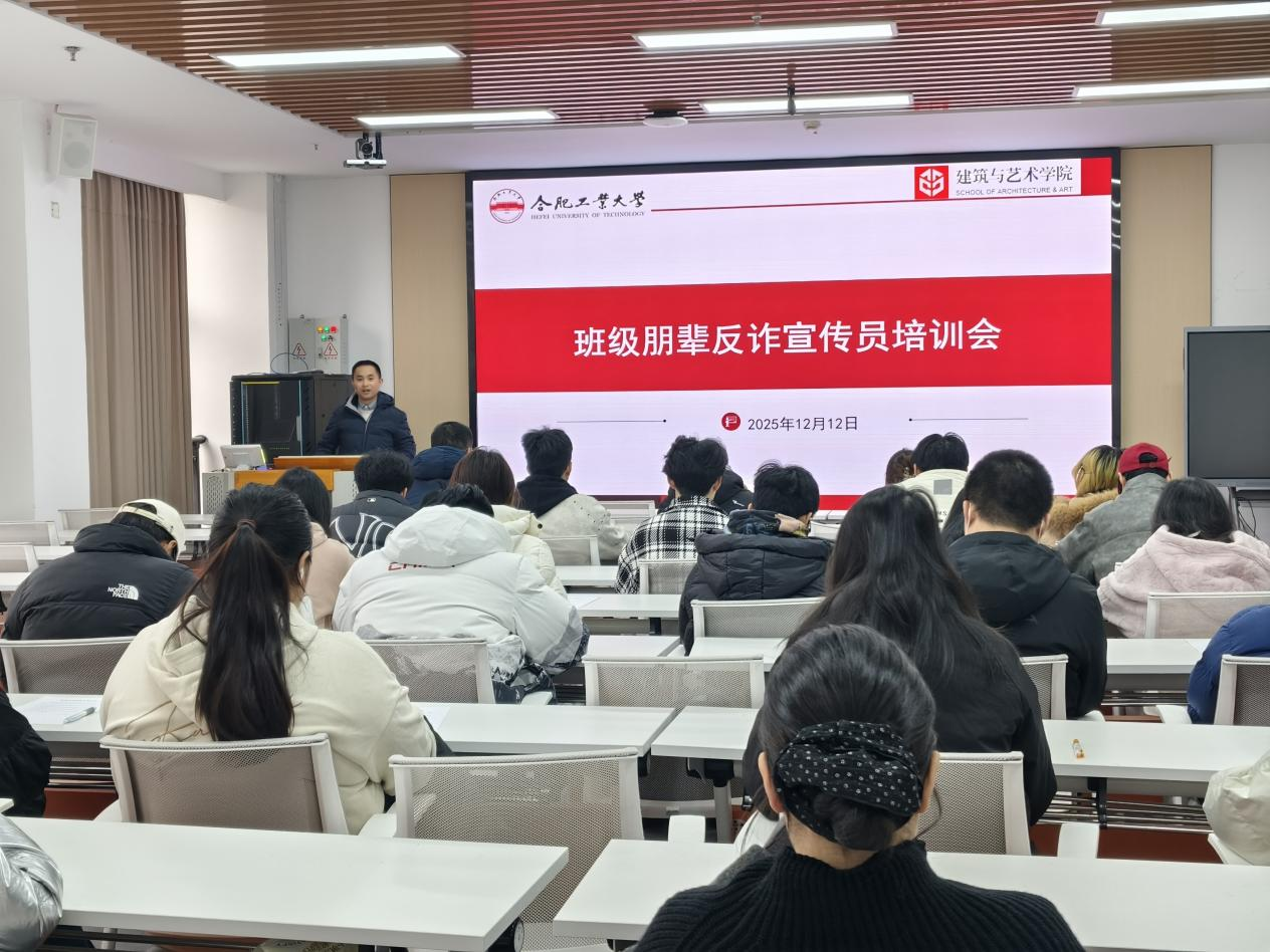 12月12日,学院在建艺馆118室召开班级朋辈反诈宣传员专题培训会,各班级反诈宣传员参会。与会同学观看了相关防诈宣传视频,了解了常见的诈骗方式。培训中,建筑与艺术学院学生工作办公室主任孙根结合校园内真实发生的案例,详细剖析了电信网络诈骗的常见类型和作案手法。其中包括刷单返利诈骗、网络贷款诈骗、冒充熟人诈骗等常见类型,并分析了每种诈骗手段的特点及防范要点,提出了相应的防范措施和对策。