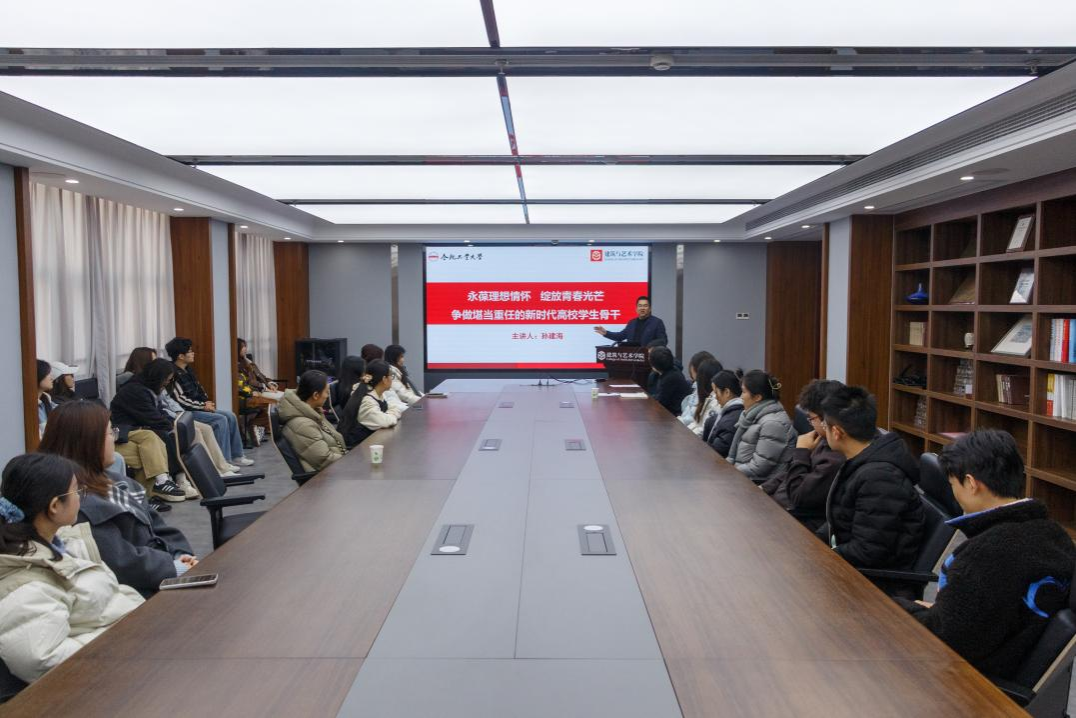 12月18日,团学骨干专题思政课在建筑艺术馆313会议室举行。学院党委书记孙建海围绕“永葆理想情怀 绽放青春光芒——争做堪当重任的新时代高校学生骨干”进行专题授课,引导学生骨干深化对初心使命的认知,筑牢“服务同学、奉献集体”的责任根基。