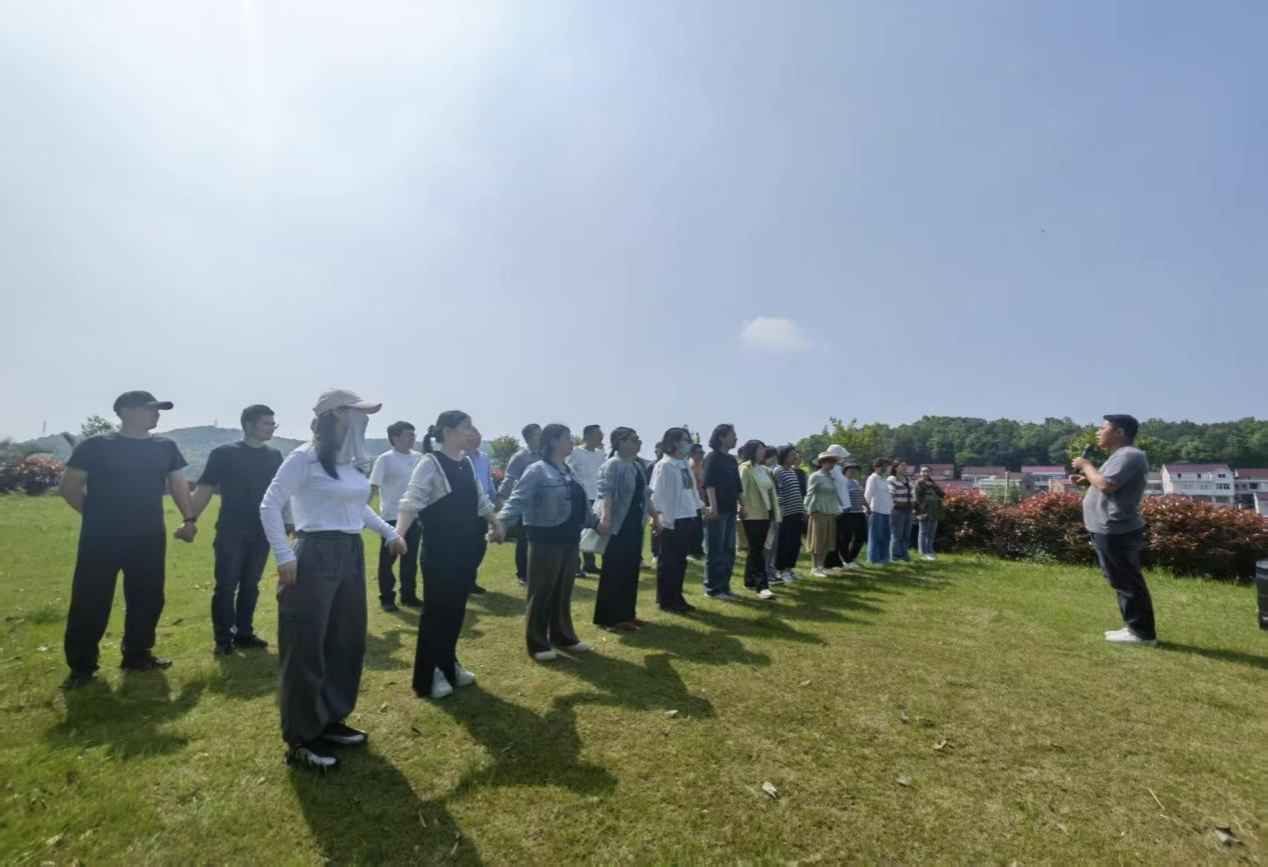 30余名教职工参加此次活动,先后探访了双顶山叶落双峰观景台、矾山晶空间·结晶池和寨基山。教职工们在双顶山的山峦叠翠、寨基山的绿意盎然中感受自然之美;在中国第四批国家工业遗产核心建筑之一的“千年矾都”矾花源景区结晶池前,老师们深入了解保留原有建筑肌理与工业风貌的设计作品,体会工业遗址与现代艺术的交融。 为强化团队协作,活动还精心设计桃花朵朵开、拔河等趣味团建游戏,趣味互动与团队合作轮番上演,教职工们积极参与、默契配合,在轻松欢乐的互动中打破隔阂、加强协作。