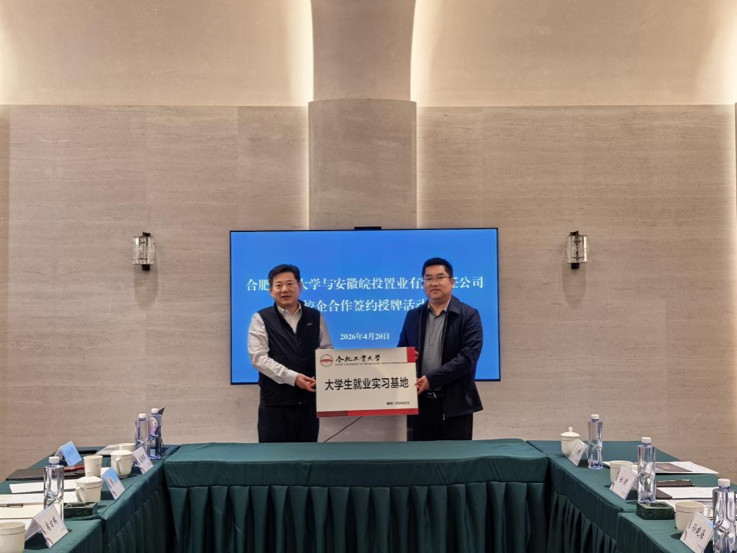 随后,校企双方共同签订《共建合肥工业大学大学生就业实习基地》协议,并为大学生就业实习基地揭牌。
