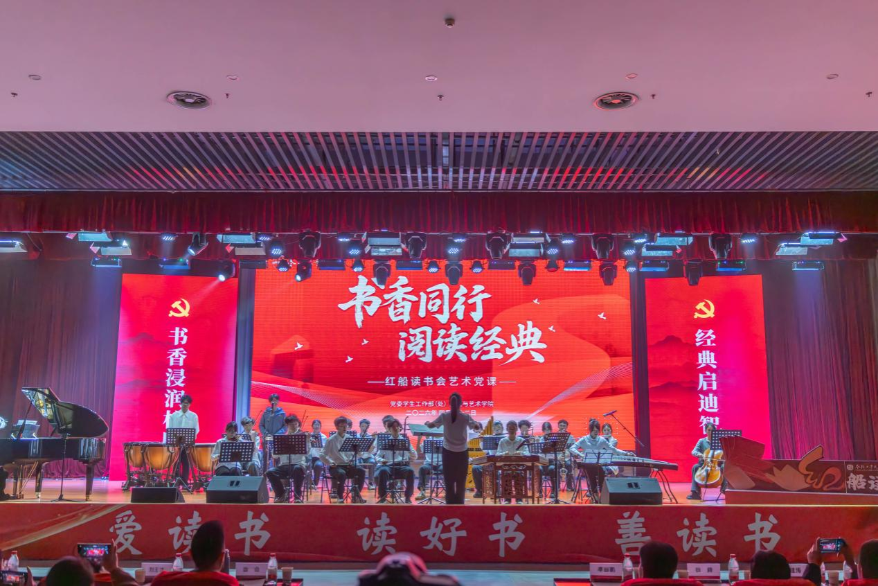 本次红船读书会艺术党课由党委学生工作部(处)主办、建筑与艺术学院承办,特邀安徽艺术学院参演。活动以阅读为纽带、以艺术为载体,将全民阅读与思政教育有机融合,有效丰富书香校园建设内涵,厚植青年学子家国情怀。